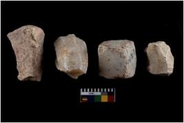 | Description / विवरण | There are n 4 of utilized worked cores and show irregular scar pattern on both dorsal and ventral side. Two have a broken tip. |