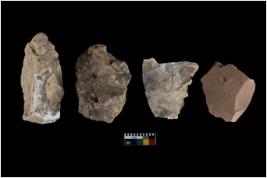| Description / विवरण | There are n 4 of utilized worked cores and show irregular scar pattern on both dorsal and ventral side. They have sharp edges. |