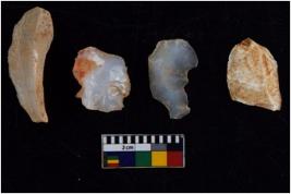 | Description / विवरण | There are n 4 flakes tool; there are multidirectional irregular scar pattern on them; made of short flakes and all four have tapering edges. |