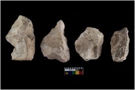 | Description / विवरण | There are n 4 of utilized worked cores and show irregular scar pattern on both dorsal and ventral side. One has a flat base. |