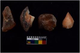 | Description / विवरण | There are n 4 flakes tool; there are large flakes with sides trimmed, The dorsal is relatively flat. One is pointed functional top. |