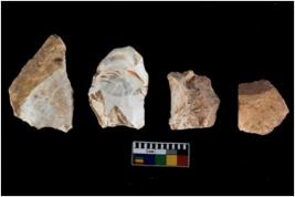 | Description / विवरण | There are n 4 of utilized worked cores and show irregular scar pattern on both dorsal and ventral side. Two have broken tip. |