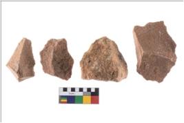 | Description / विवरण | Specimen of flake tools with prominent flaking marks. They are made up of a short flakes with sides trimmed. |