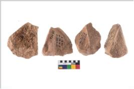 | Description / विवरण | Specimen of flake tools with prominent flaking marks. They are made up of a short flakes with sides trimmed. |