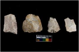 | Description / विवरण | There are n 4 of utilized worked cores and show irregular scar pattern. Three have broken tip. |