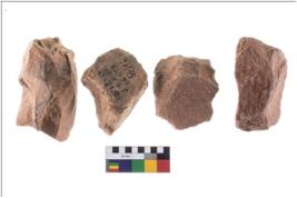 | Description / विवरण | Specimen of flake tools with prominent flaking marks. They are made up of a short flakes with sides trimmed. |