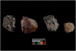 | Description / विवरण | Specimen of flake tools with prominent flaking marks. They are made up of a short flakes with sides trimmed. |