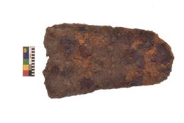 | Description / विवरण | Fragment of Iron Blade. It is rectangular in shape with highly rusted in present condition. It is body has thin sharp blade edge on one side and thick blunt edge on the other side. |