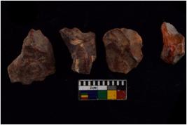 | Description / विवरण | There are n 4 flakes tool; there are large flakes with sides trimmed, Marks of secondary flaking are present on the both the faces |