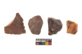 | Description / विवरण | There are n 4 of utilized worked cores and show irregular scar pattern on both dorsal and ventral side. Two have a broken tip while three have a flat base. |