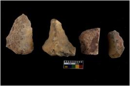 | Description / विवरण | There are n 4 of utilized worked cores and show irregular scar pattern on both dorsal and ventral side. Three are tapering at one end. |