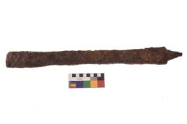 | Description / विवरण | Specimen of a point with sharp pointed functional bottom end and rectangular slightly projected top it is highly rusted in present condition. |