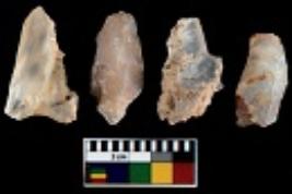 | Description / विवरण | There are n 4 utilized flake cores. There are multi directional irregular scar pattern on them. All of them are tapering at one end. |
