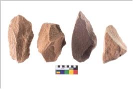 | Description / विवरण | There are n 4 utilized flake cores. There are multidirectional irregular scar pattern on both dorsal and ventral face of the flake cores. |