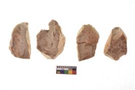 | Description / विवरण | There are n 4 of utilized worked cores and show irregular scar pattern on both dorsal and ventral side. One has a broken tip. |