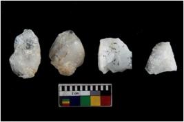 | Description / विवरण | There are n 4 of utilized worked cores. They show multidirectional irregular scar pattern and have sharp edges. Two have broken tip. |
