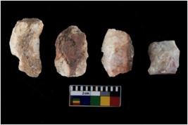 | Description / विवरण | There are n 4 of utilized worked cores and show irregular scar pattern on both dorsal and ventral side. Two have a broken tip. |
