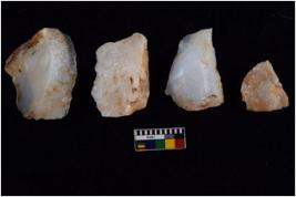 | Description / विवरण | There are n 4 flakes tool; there are multidirectional irregular scar pattern on them; made of short flakes and all four have tapering edges. |