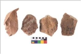 | Description / विवरण | There are n 4 utilized flake cores. There are multidirectional irregular scar pattern on both dorsal and ventral face of the flake cores. |