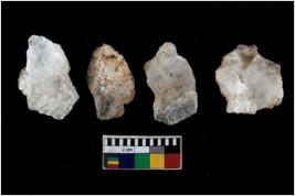 | Description / विवरण | There are n 4 of utilized worked cores. They show multidirectional irregular scar pattern. Three are tapering on one end. |