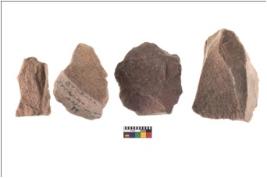 | Description / विवरण | There are n 4 utilized flake cores. There are multidirectional irregular scar pattern on both dorsal and ventral face of the flake cores. |