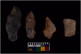 | Description / विवरण | There are n 4 flak tools; there are large flakes with sides trimmed, Marks of secondary flaking are present on the both the faces. The dorsal is relatively flat. |