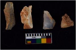 | Description / विवरण | There are n 4 flakes tool; there are large flakes with sides trimmed, Marks of secondary flaking are present on the both the faces. The dorsal is relatively flat. |