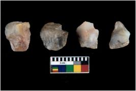 | Description / विवरण | Specimen of fluted cores having several broad fluted marks indicating the detached blades from it. |