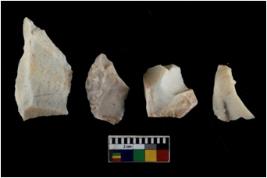 | Description / विवरण | There are n 4 of utilized worked cores. They show multidirectional irregular scar pattern. Three are tapering at one end. |