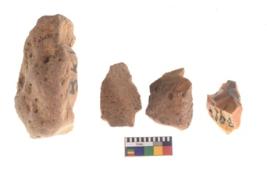 | Description / विवरण | There are n 4 of utilized worked cores and show irregular scar pattern on both dorsal and ventral side. Two have a flat base. |