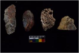 | Description / विवरण | There are n 4 flakes tool; there are large flakes with sides trimmed, Marks of secondary flaking are present on the both the faces. The dorsal is relatively flat. |