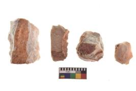| Description / विवरण | There are n 4 of utilized worked cores and show irregular scar pattern. Two have a flat base and three have a broken tip. |