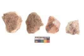| Description / विवरण | There are n 4 of utilized worked cores and show irregular scar pattern on both dorsal and ventral side. Two have a broken tip. |