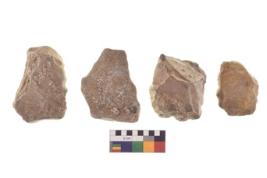 | Description / विवरण | There are n 4 of utilized worked cores and show irregular scar pattern on both dorsal and ventral side. Three have a broken tip. |