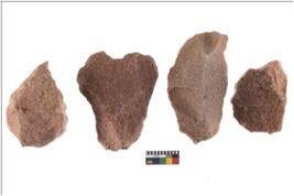 | Description / विवरण | There are n 4 utilized flake cores. There are multidirectional irregular scar pattern on both dorsal and ventral face of the flake cores. |