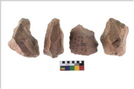 | Description / विवरण | There are n 4 utilized flake cores. There are multidirectional irregular scar pattern on both dorsal and ventral face of the flake cores. |