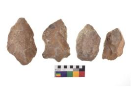 | Description / विवरण | There are n 4 of utilized worked cores and show irregular scar pattern. They are tapering at one end and have sharp edges. |