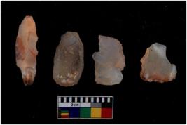 | Description / विवरण | There are n 4 flake cores. All of them are fully fluted flake cores without any trace of crested ridge flakes. |