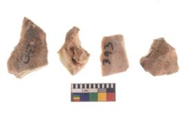 | Description / विवरण | There are n 4 of utilized worked cores and show irregular scar pattern on both dorsal and ventral side. Two have a broken tip. |