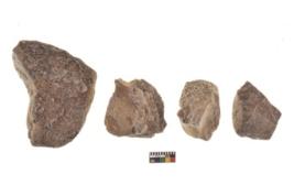 | Description / विवरण | There are n 4 of utilized worked cores and show irregular scar pattern. Two have a broken tip. |
