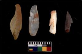 | Description / विवरण | There are n 4 Flake tool; There are multidirectional irregular scar pattern on them. few have blunt edges, Some of them are tapering at one end. |