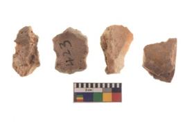 | Description / विवरण | There are n 4 of utilized worked cores and show irregular scar pattern on both dorsal and ventral side. One has a broken tip. |