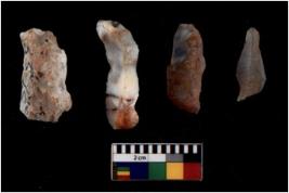 | Description / विवरण | There are n 4 flakes tool; there are large flakes with sides trimmed, Marks of secondary flaking are present on the both the faces. |