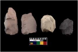 | Description / विवरण | Specimen of a cores with several broad fluted marks, the reverse bulb and platform can be seen. |