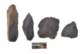 | Description / विवरण | There are n 4 utilized flake cores. There are multi directional irregular scar pattern on both dorsal and ventral face of the flake cores. Two are tapering at one end and two have blunted edges. |