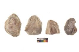 | Description / विवरण | There are n 4 of utilized worked cores and show irregular scar pattern. Two have a flat base. |