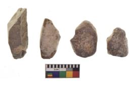 | Description / विवरण | There are n 4 of utilized worked cores and show irregular scar pattern. They are tapering at one end and two are elongated in shape. |