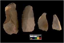 | Description / विवरण | There are n 4 flakes tool; there are large flakes with sides trimmed, Marks of secondary flaking are present on the both the faces. |