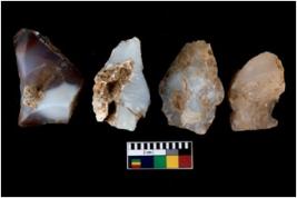 | Description / विवरण | There are n 4 utilized flake cores. There are multi directional irregular scar pattern on them. Three are tapering at one end and one has sharp edge. |