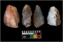 | Description / विवरण | There are n 4 utilized flake cores. There are multi directional irregular scar pattern on them. Three are tapering at one end and one has sharp edge. |